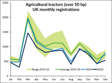 The number of agricultural tractors (over 50hp) being registered in the UK and Northern Ireland market…