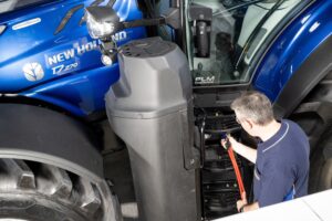 The New Holland design team has optimized the on-board gas storage thanks to the new T7’s larger chassis, with a standard capacity of 657 litres (117.9kg) and optional 480-litre (86.2kg) range extender, for a total capacity of 1,106 litres (204.1kg).